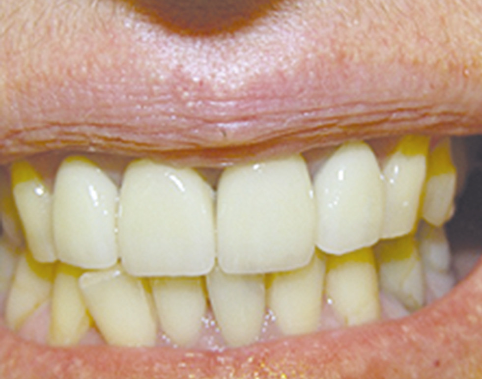 Преимущество следует отдавать препарированию с нёбным (язычным), частичным или полным перекрытием, — контакт с облицовкой предпочтительнее контакта в области границы соединения с эмалью, небольшие размеры коронок нижнечелюстных резцов — незначительная ретенция; граница препарирования до уровня верхней трети нёбной (язычной поверхности) — иначе существует риск скола, нарушение краевого прилегания; толщина по режущему краю — не более 1 мм [5, 6]. Облицовки фиксируют как правило с помощью светополимеризационных композитных материалов. Излишки материала желательно убирать полировочным бором, не зондом, так как возможно возникновение микрозазоров между материалом — краем облицовки — тканями зуба. Это ведет к скапливанию зубного налета в данном участке — расцементировке, вторичному кариесу.