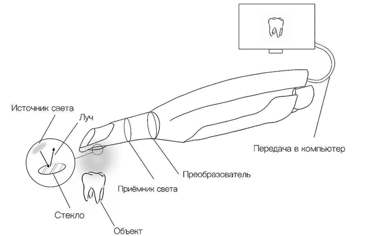 Рис. 1. Схематическое изображение принципа работы внутриротового сканера.