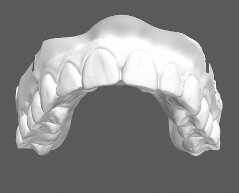 Всего было получено по 5 цифровых моделей каждым сканером. После каждого сканирования производилась калибровка. Полученные сканы модели сравнивались с эталоном (мастер-моделью), которым являлось оптическое изображение референсной модели (рис. 3), полученное с помощью лабораторного сканера ZirconZahn S300 (ZirconZahn, Италия).