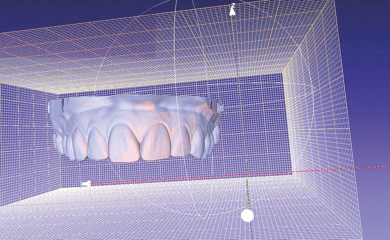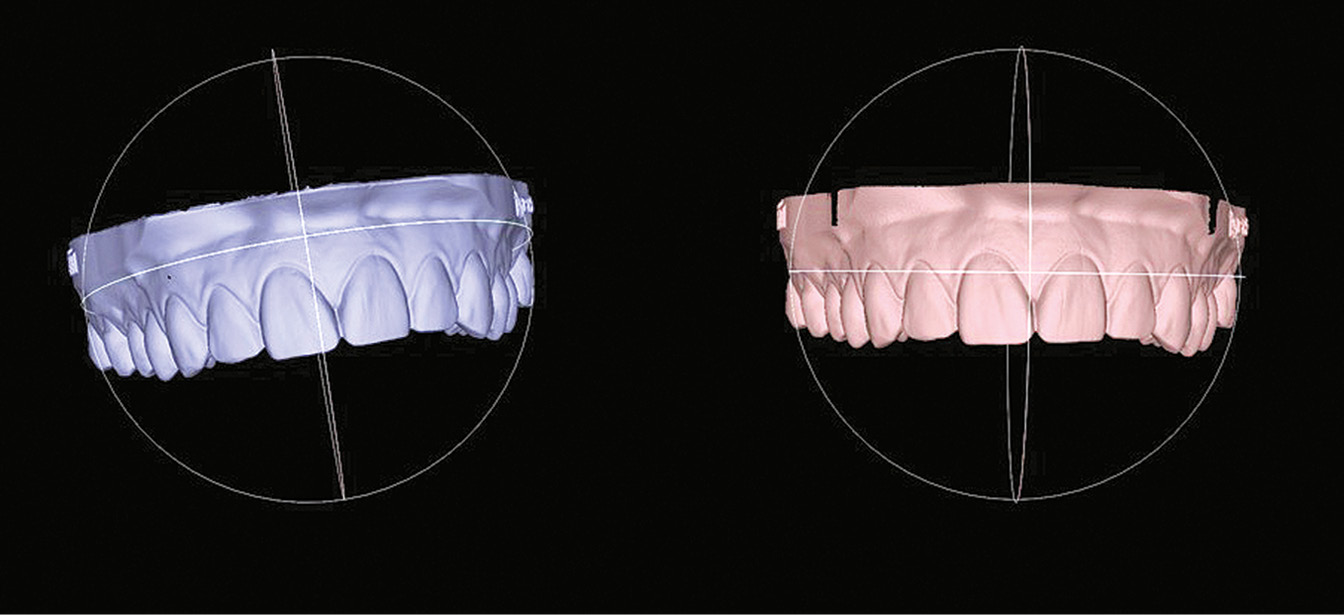 Точность внутриротовых слепков, полученных с помощью указанных сканеров, определялась при помощи измерительных инструментов программы Exoсad. Каждое полученное объемное изображение экспортировалось из программного обеспечения сканера в формате STL-файла, после чего импортировалось в программу для моделирования стоматологических конструкций Exocad, где сопоставлялось с мастер-моделью через модуль «Эксперт» и функцию «Добавить 3D-объект».
