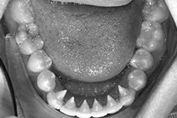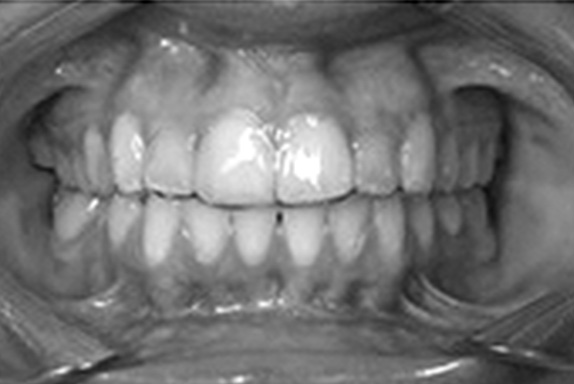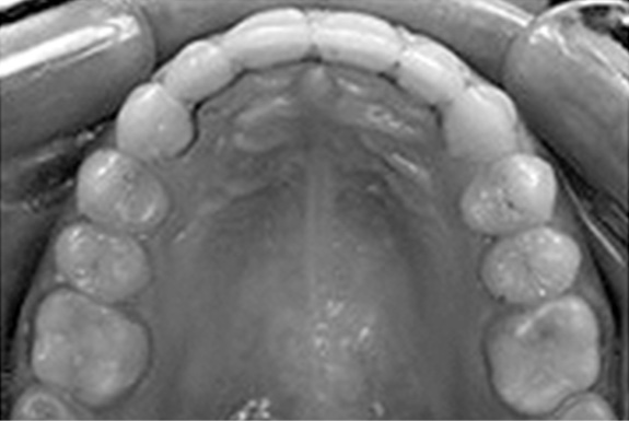 У пациентов с сочетанной патологией окклюзии зубных рядов с применением брекет-системы перед ее удалением из полости рта фиксировались несъемные проволочные ретейнеры на внутреннюю поверхность фронтальных зубов (рис. 3) и каппы (рис. 4).