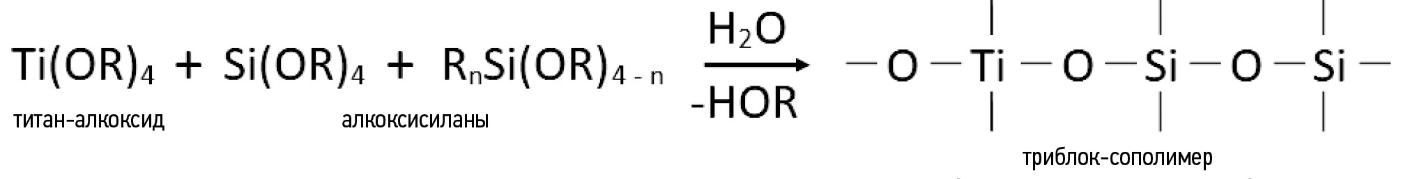 Традиционный синтез ормокеров начинается с того, что алкоксисиланы функционализируются алкоксидами металлов с образованием Si-O-Si-наноструктур. Одним из металлов, функционализирующих алкоксисиланы, является титан (рис. 3) [16, 17].