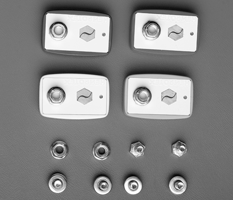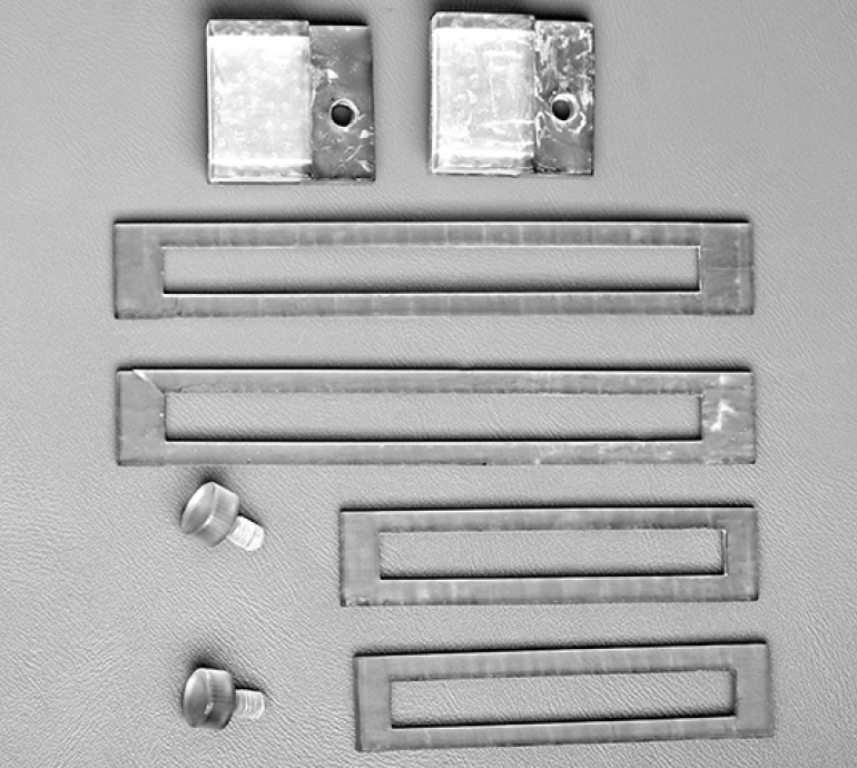 Fig. 3. Polymer plugs created by 3D printing, and horizontal plates with rectangular holes and fixing screws.