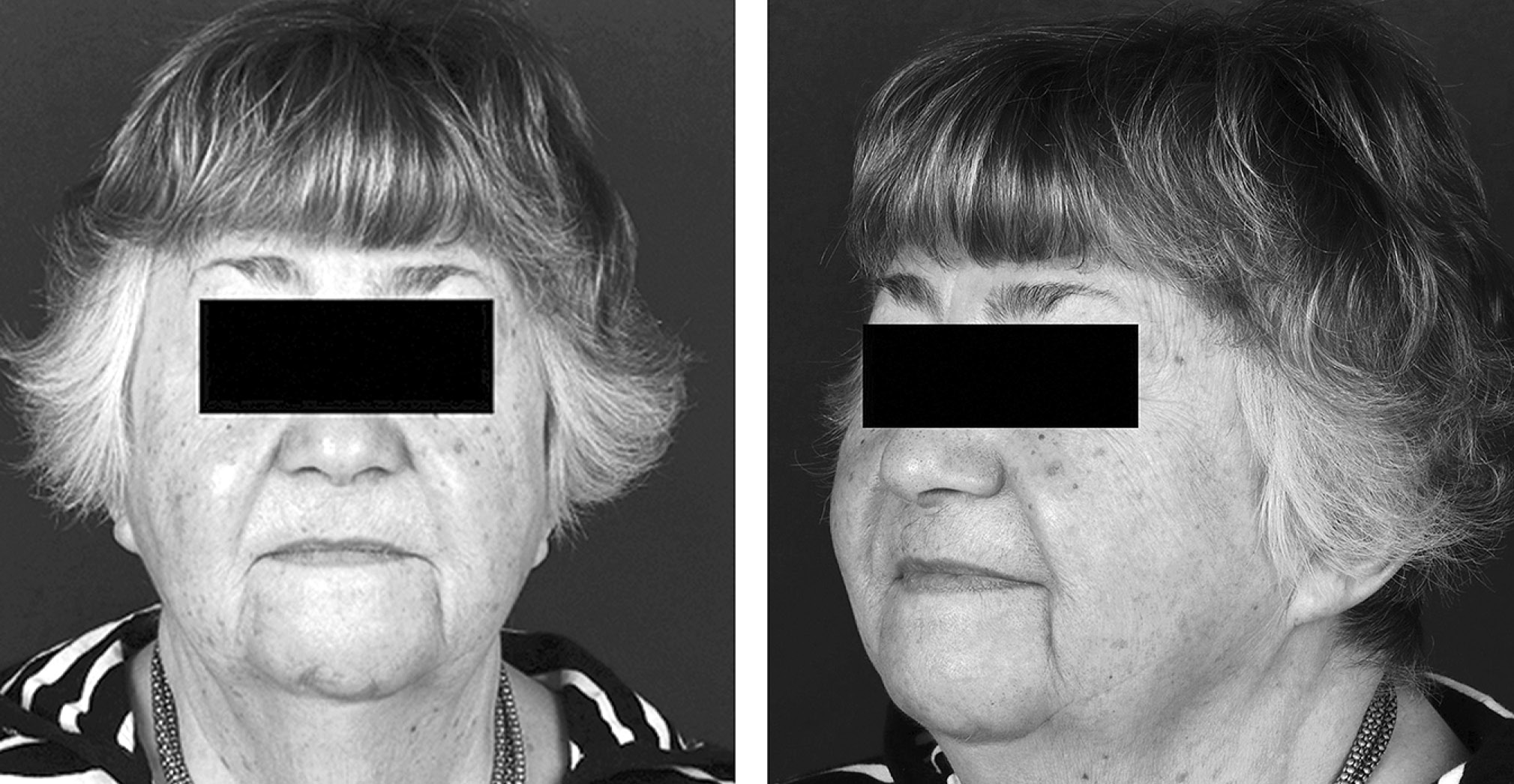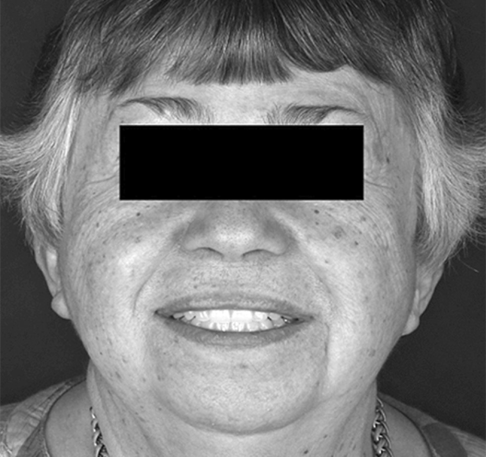 Пациентка Ш., 62 года, обратилась с неудовлетворенностью ранее изготовленными полными съемными зубными протезами (рис. 1).