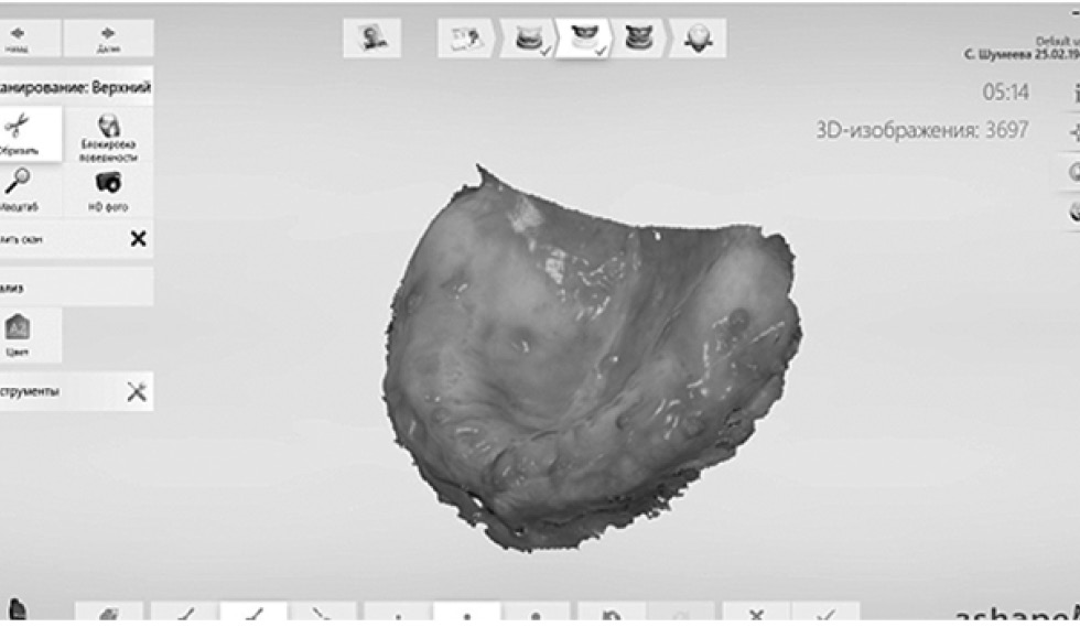 Рис. 3. Оптический оттиск верхней челюсти в программе 3Shape.