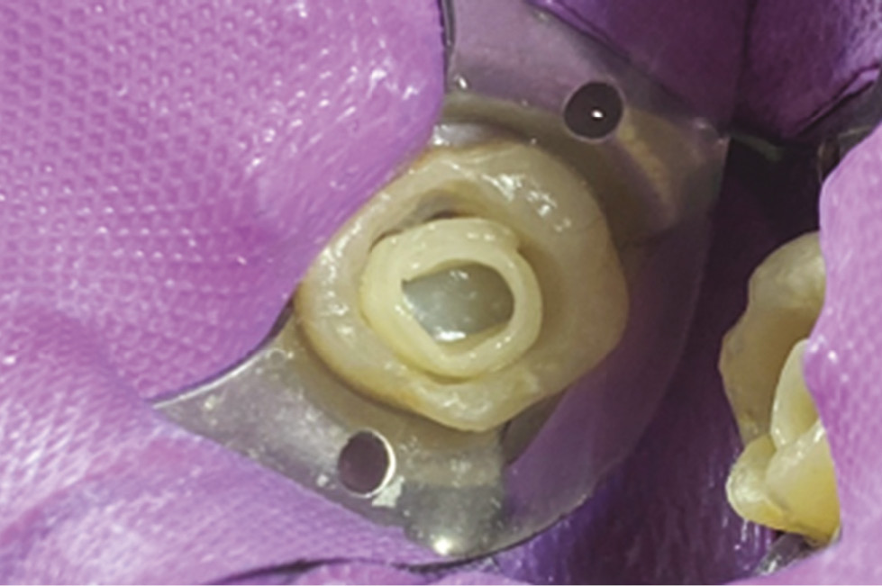 Fig. 11. Tooth 2.7 after endodontic treatment for complicated caries.
