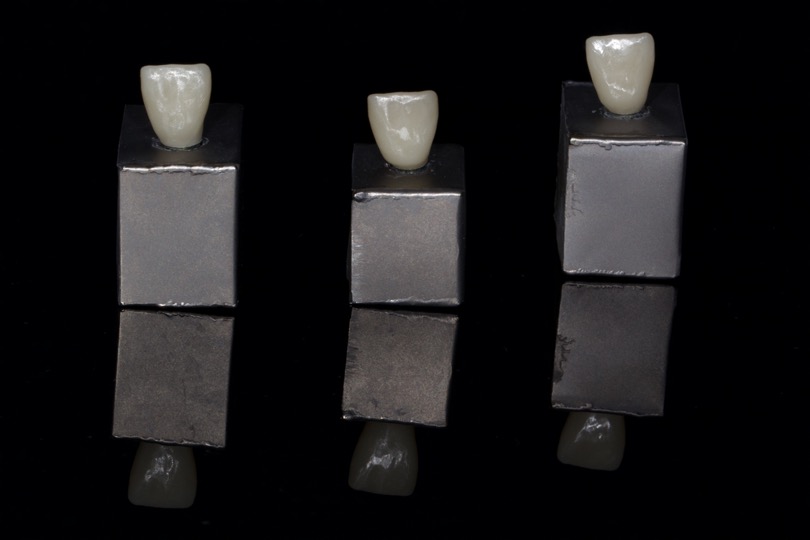 Рис. 2. Коронки, фиксированные к имплантатам (вид сбоку).