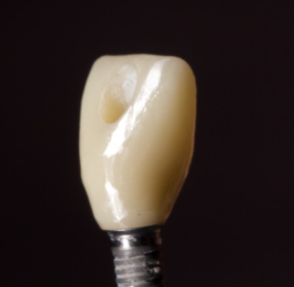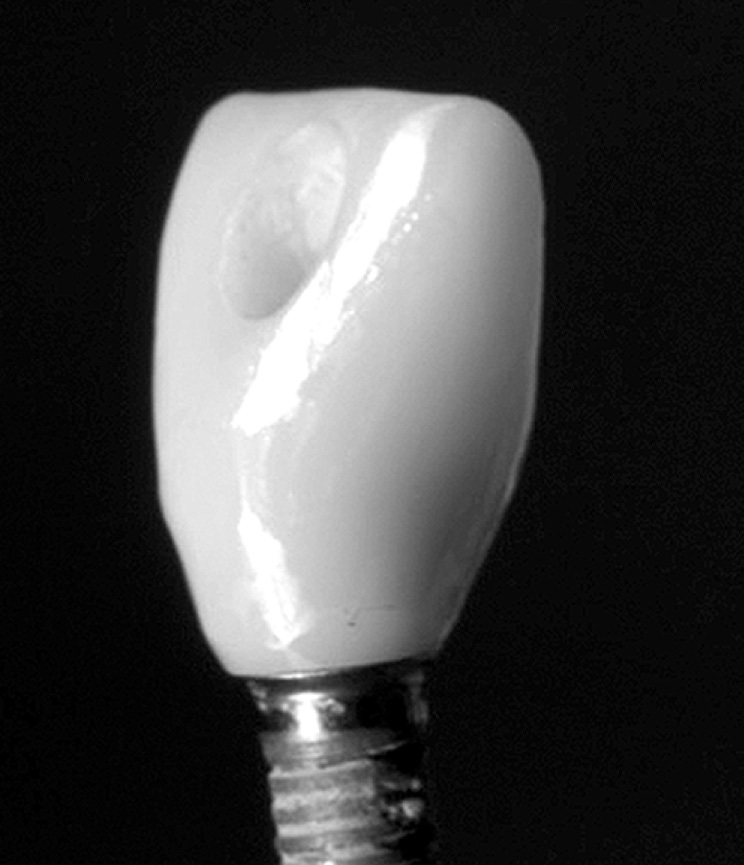 Рис. 4. Коронка, фиксированная на индивидуальный угловой абатмент.