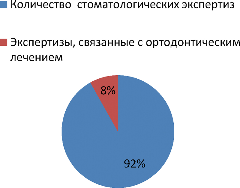 Из 271 изученного дела 8% (24 экспертизы) были связанны с ортодонтическим лечением (рис. 2, 3).