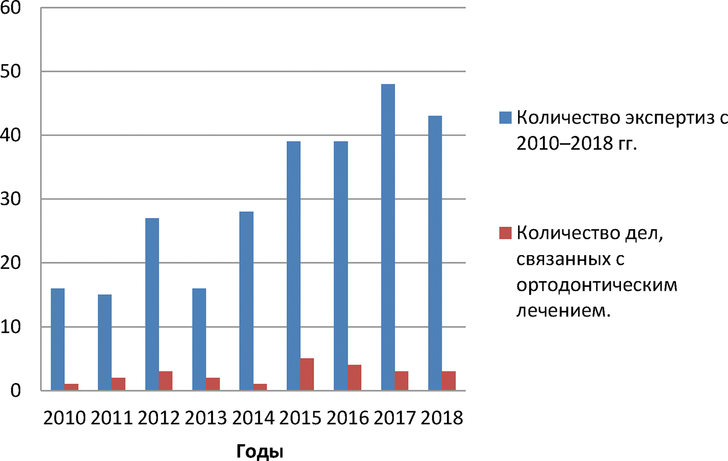 Рис. 2. Количество судебно-медицинских экспертиз по ортодонтическому лечению.