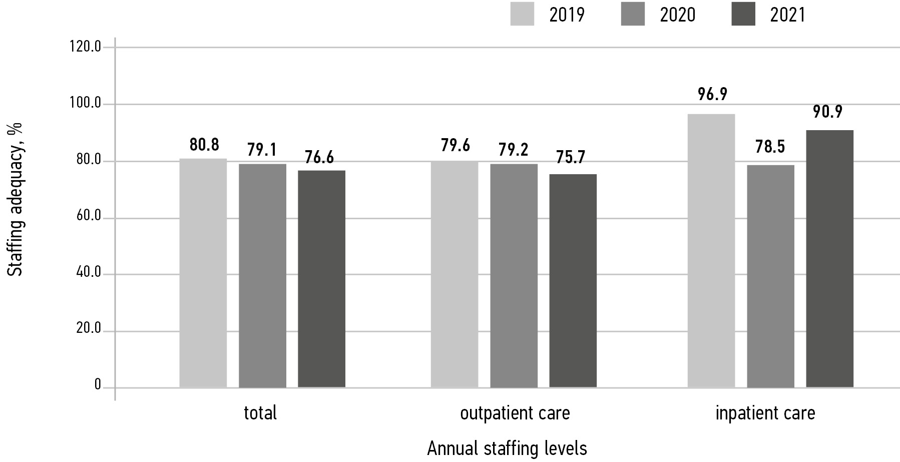 Total | Staffing adequacy, % | 81.1 | 79.1 | 73.8 |