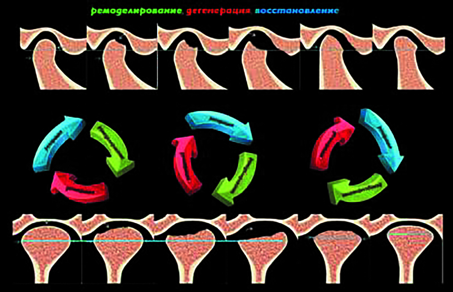 В ходе данного исследования авторы сочли целесообразным отдельно изучать высоту мыщелкового отростка во избежание некорретного измерения высоты ветвей (в случаях дегенеративных изменений мыщелкового отростка). Дегенеративное заболевание ВНЧС — невоспалительное заболевание ВНЧС (как и другого синовиального сустава), клинически проявляющееся интракапсулярной болью и проблемами с диском и характеризующееся деструкцией и восстановлением артикуляционного хряща и подлежащей субхондральной кости (рис. 1).