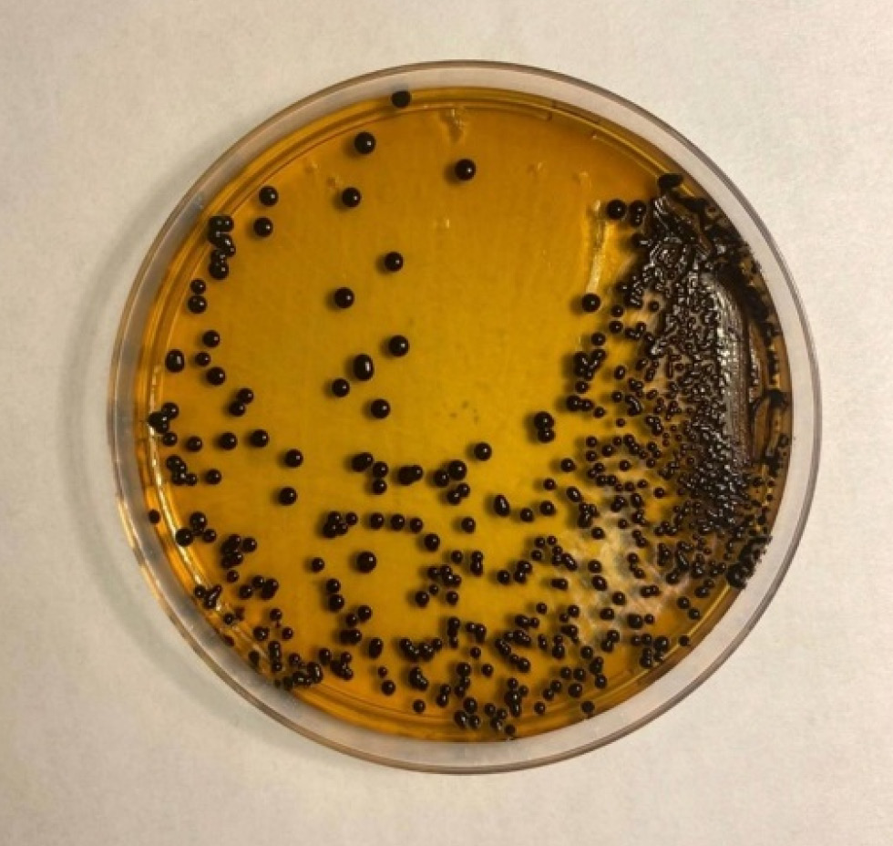 Sabouraud agar consists of enzymatic peptone digest, glucose, casein, and agar. Owing to its high glucose concentration and low pH, this medium exhibits selective properties favoring fungal growth. Additionally, potassium tellurite is included in the medium, which imparts a characteristic black pigmentation to Candida albicans colonies, in contrast to their usual white appearance.
