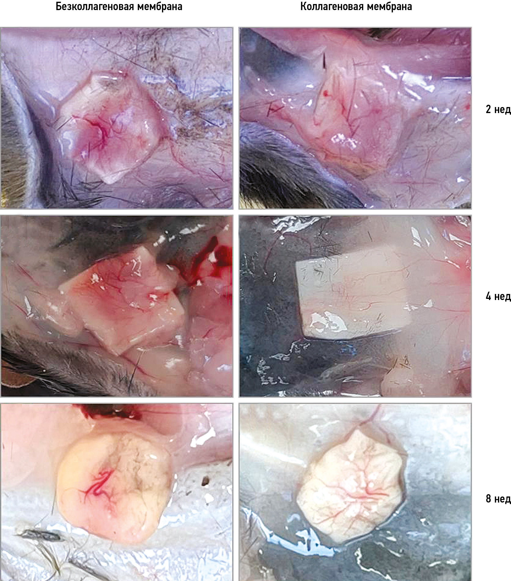 Оценка биосовместимости мембран для направленной регенерации в экспериментах in vivo через 2, 4 и 8 нед после имплантации