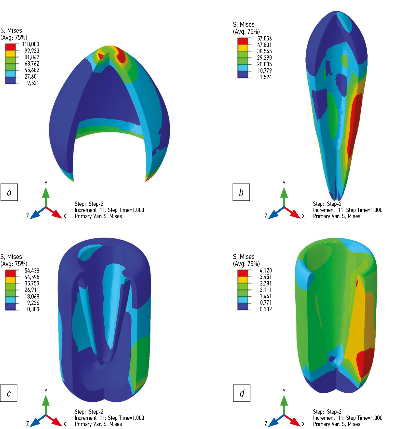Table 1. Maximum stress values under functional loading of a tooth in unfavorable biomechanical conditions (MPa)