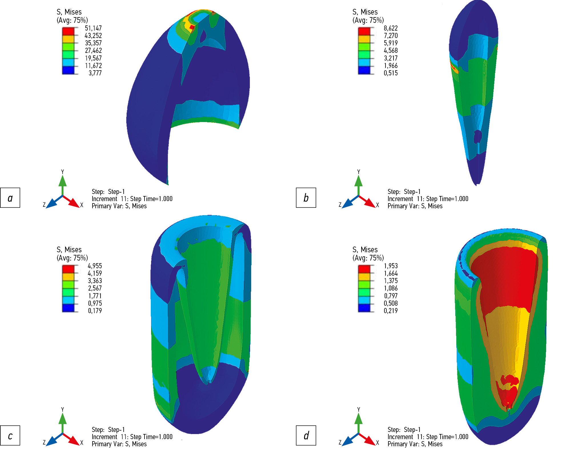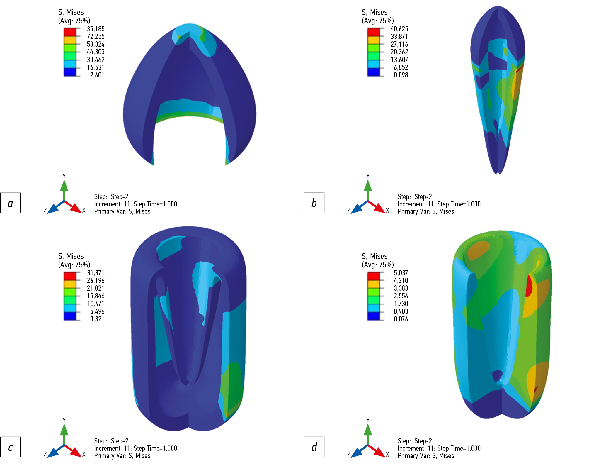 The patterns revealed through mathematical modeling are consistent with clinical observations, confirming the applicability of this method for individualized prediction of the biomechanical consequences of dental interventions affecting the hard tissues of the tooth.