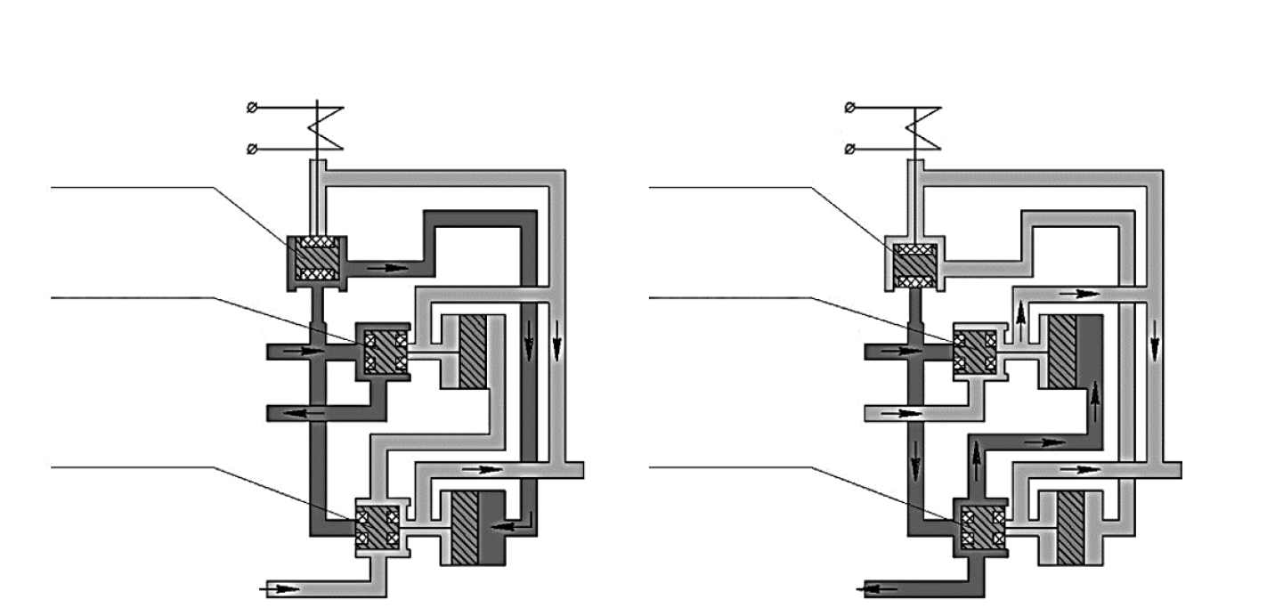 Рис. 2. Принцип действия клапанов распределительных Т055.096.