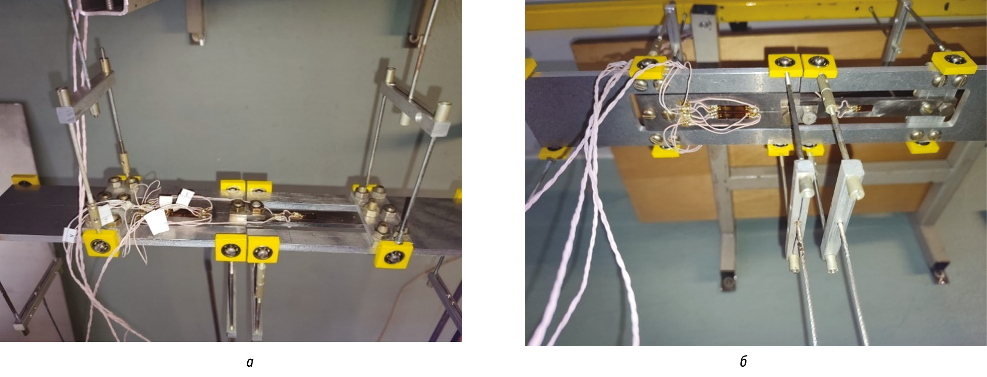 Рис. 3. Фотография установки, вид сверху (а) и вид снизу (б)