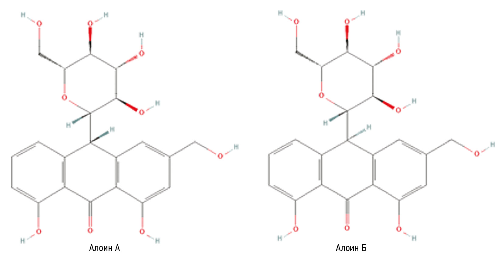Обоснование. Алоэ древовидное (Aloe arborescens Mill.) — это фармакопейное растение, используемое для создания различных лекарственных препаратов [1, 2]. Препараты на основе листьев и побегов алоэ обладают широким спектром фармакологической активности за счет наличия фенольных соединений (включая антрахиноны), полисахаридов и др. [1–7]. Одним из наиболее известных биологически активных соединений видов алоэ является барбалоин, или алоин (смесь стереомеров, обозначаемых как алоин А и алоин В) (рис. 1) [1, 2]. Барбалоин был выделен и предложен для стандартизации препаратов алоэ ранее Т.К. Рязановой в ходе диссертационного исследования под руководством В.А. Куркина [1, 7]. Содержание алоинов в разных видах алоэ может составлять от 0,1 до 10 ٪ в пересчете на абсолютно сухое сырье [7, 9]. Барбалоин используется для стандартизации сырья и препаратов алоэ [10].
