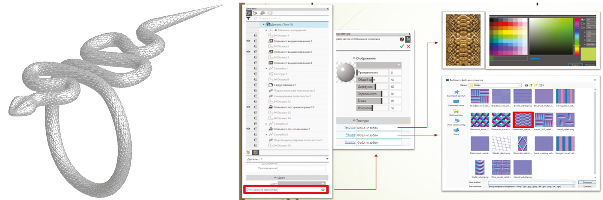 Рис. 1. Выбор текстуры в КОМПАС-3D
