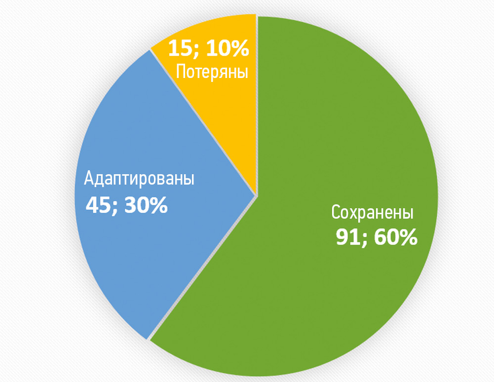 Результаты. Всего в корпусе насчитывается 151 риторический прием. Наиболее часто встречаются метафоры (51 случай), перечисления (29) и аллюзии (25). Несколько реже отмечены гиперболы (15), олицетворения (14), эпитеты (11) и сравнения (5). Сопоставление с переводными текстами показало: 60 % приемов сохранены полностью, 30 % адаптированы, 10 % утрачены. Как видно из рис. 1, большинство выразительных средств сохранили форму и воздействие в переводе, что свидетельствует о высокой степени передачи образности. При адаптации смысл сохранялся, хотя эмоциональная окраска могла снижаться. Например, «колоритное событие» передано как «vibrant event», «край земли» — «edge of the world». В то же время олицетворение в предложении «река Урал символически делит город…» трансформировано в нейтральное «The Ural river acts as a natural border…”. Такая адаптация снижает пафос, но делает текст уместным для целевой аудитории.