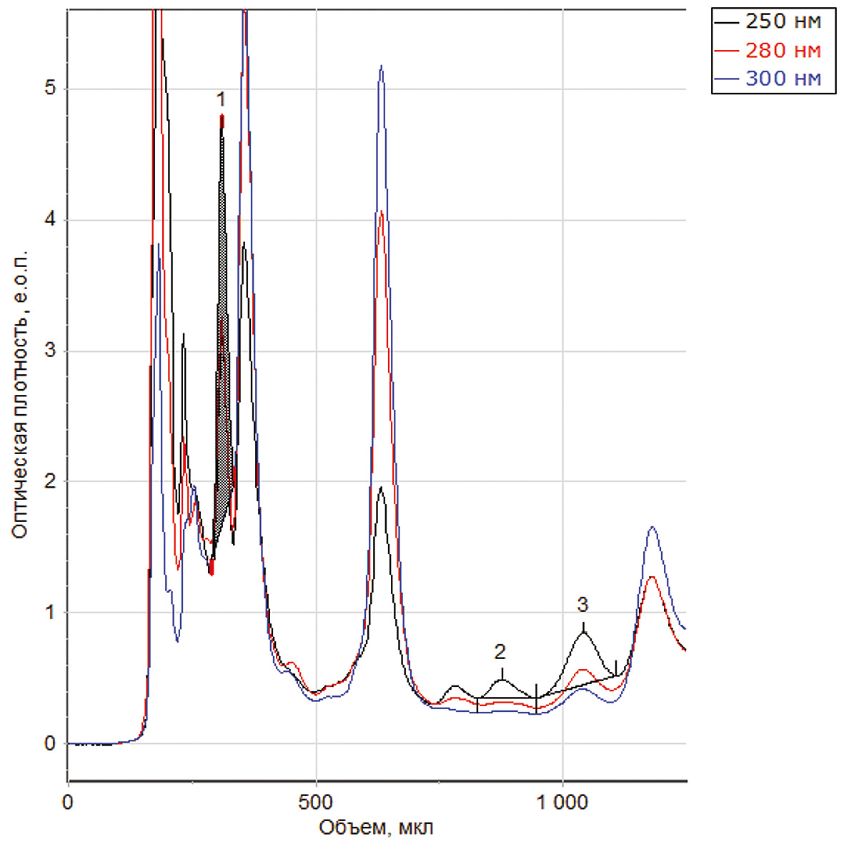 3. Рис. 2. Хроматограмма разделения экстракта ромашки с ИЖ [C6MIM][BF4]: подвижная фаза ацетонитрил/вода (15/85 об.%, 0,1 % ТФУ): 1 — хлорогеновая кислота; 2 — рутин; 3 — цинарозид